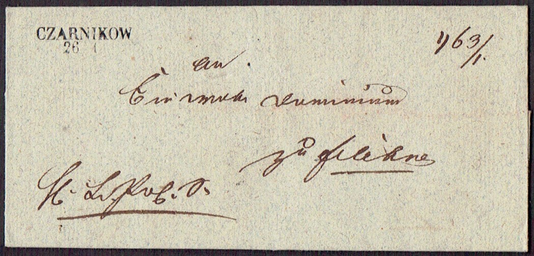 1826 Czarnikow (Czarnków), obwoluta listu wysłanego z Czarnikow (Czarnków) do Filehne (Wieleń).