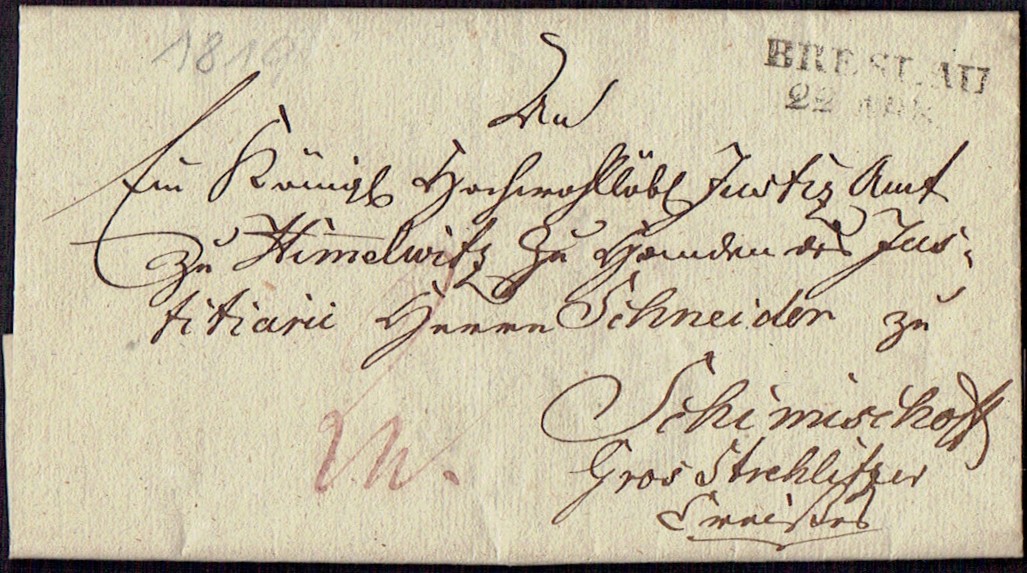 1819 Breslau (Wrocław), kompletny składany list wysłany z Bresłau (Wrocław).