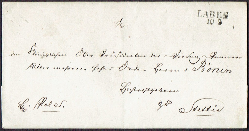 1825 po, Labes (Łobez), obwoluta listu wysłanego z Labes (Łobez) do Stettin (Szczecin).