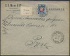 1862 TRZEMESZNO - list tzw. "obciążony" paczką wysłany 6/3 z miejscowości Trzemeszno do Bydgoszczy, czarny dwuwierszowy ramkowy stempel nadawczy, nalepka "aus Trzemeszno" z numerem przesyłki, dopisek "Portofreie Justiz Sache" zwalniający korespondencję urzędową od opłaty pocztowej, ponieważ było to często nadużywane (szczególnie w przypadku listów z sądów), 1.I.1838 wprowadzono pierwsze stemple imienne dla urzędników prowadzących korespondencję, a od 30.XI.1852 obowiązek ich stosowania na wszystkich listach sądowych - tu stempelek "W.PENNINGER."; również na froncie stempel odbiorczy - dwuobrączkowy datownik BROMBERG 7/3; na odwrocie pieczęć nadawcy z godłem; dekoracyjna całość w dobrym stanie zachowania. | |