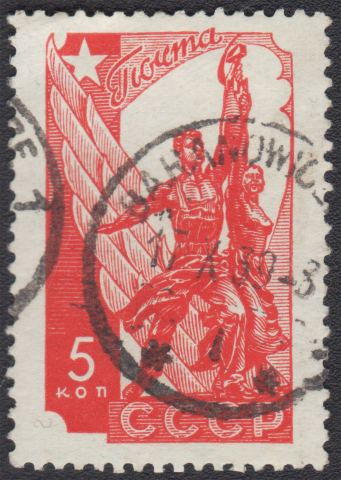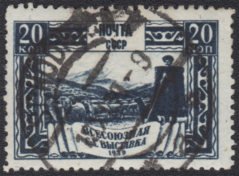 1940 Obszary anektowane przez ZSRR, tereny włączone do Ukrainy, znaczek radziecki za 80 kop skasowany 23 III 1940 czytelnie odciśniętym w Stryju radzieckim datownikiem СТРIЙ СТАНIСЛ. ОБЛ. z pięcioramienną gwiazdką i wyróżnikiem "=a="; w fundamentalnym podręczniku J.W. Żurawskiego vel Grajewskiego Sowieckie znaki pocztowe na okupowanych ziemiach polskich w latach 1939-1941 datownik nie katalogowany; bardzo rzadki walor w dobrym stanie zachowania (niewielki ubytek powierzchniowej warstwy papieru na rysunku).