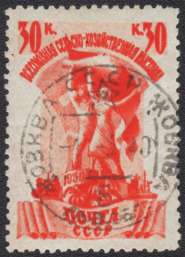 1940 Obszary anektowane przez ZSRR, tereny włączone do Ukrainy - ŻÓŁKIEW - znaczek radziecki za 30 kop skasowany 1.3. czytelnie odciśniętym radzieckim datownikiem "ЖОВКВА СССР ЖОВКВА ЛЬВ.ОБЛ." z wyróżnikiem "b" (б); bardzo dobry stan zachowania.
