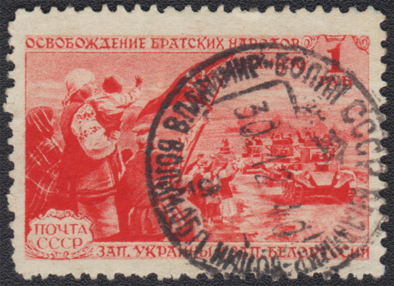 1940 "Wyzwolenie bratnich narodów Zachodniej Ukrainy i Zachodniej Białorusi" - znaczki radzieckie wydane z okazji okupacji terenów połowy Polski przez ZSRR, seria kasowana; bardzo dobry stan zachowania.