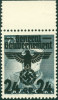 1940 znaczki opłaty radiowej (Rundfunk), parka pionowa - część z nominałem przyklejano na odcinku potwierdzenia wniesienia opłaty radiowej dla opłacającego, a część z literą "A" na blankiecie, który zostawał w archiwum; czyste (Fi.100.-) w bardzo dobrym stanie zachowania. | Fi.1+2 |