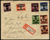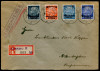 1940 Kraków 2, koperta listu poleconego wysłanego z Krakowa, na kopercie znaczki przedrukowe. | Fi.2, 4, 8, 9 |