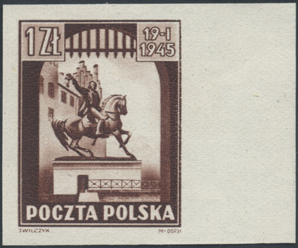 1945 zabytki Krakowa, znaczek z silnie przesuniętą perforacją pionową , gwarancja Walocha. | Fi.364MK |