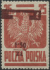 1945 wydanie przedrukowe, znaczek za 1,50 zł./25 gr. z nadrukiem odwróconym formą II typ 2, ze znacznym brzegowym uszkodzeniem belki zakrywającej stary nominał i kropkami na dole nadruku, gwarancja i oznaczenie Walocha. | Fi.376a FII T2 No B Mi.409b |