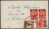 1945 wydanie przedrukowe, narożnikowy czworoblok znaczków w barwie czerwonej z nadrukiem formy II z poz. 36/47, wszystkie z nadrukiem typ I, bardzo dobry stan zachowania stan zachowania, gwarancja i oznaczenie Schmutz. | Fi.376a T1 Mi.409a |