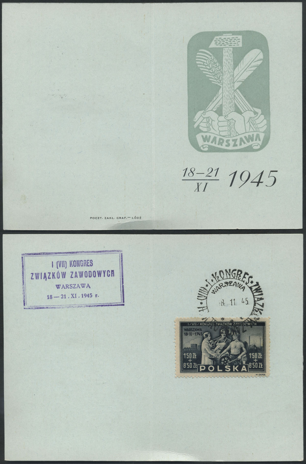 1945 VII Kongres Związków Zawodowych, karnet okolicznościowy stemplowany w pierwszym dniu obiegu. | Fi.386 Mi.413 |