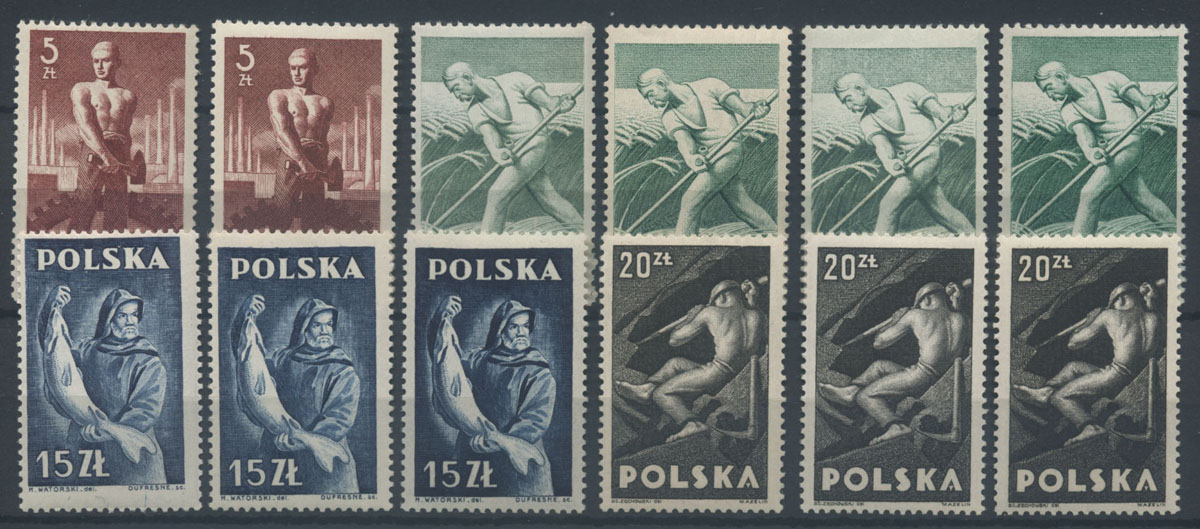 1947 świat pracy, seria z różnymi odmianami, każdy znaczek gwarancja i opis Walocha. | Fi.437-40 Mi.472-5 |