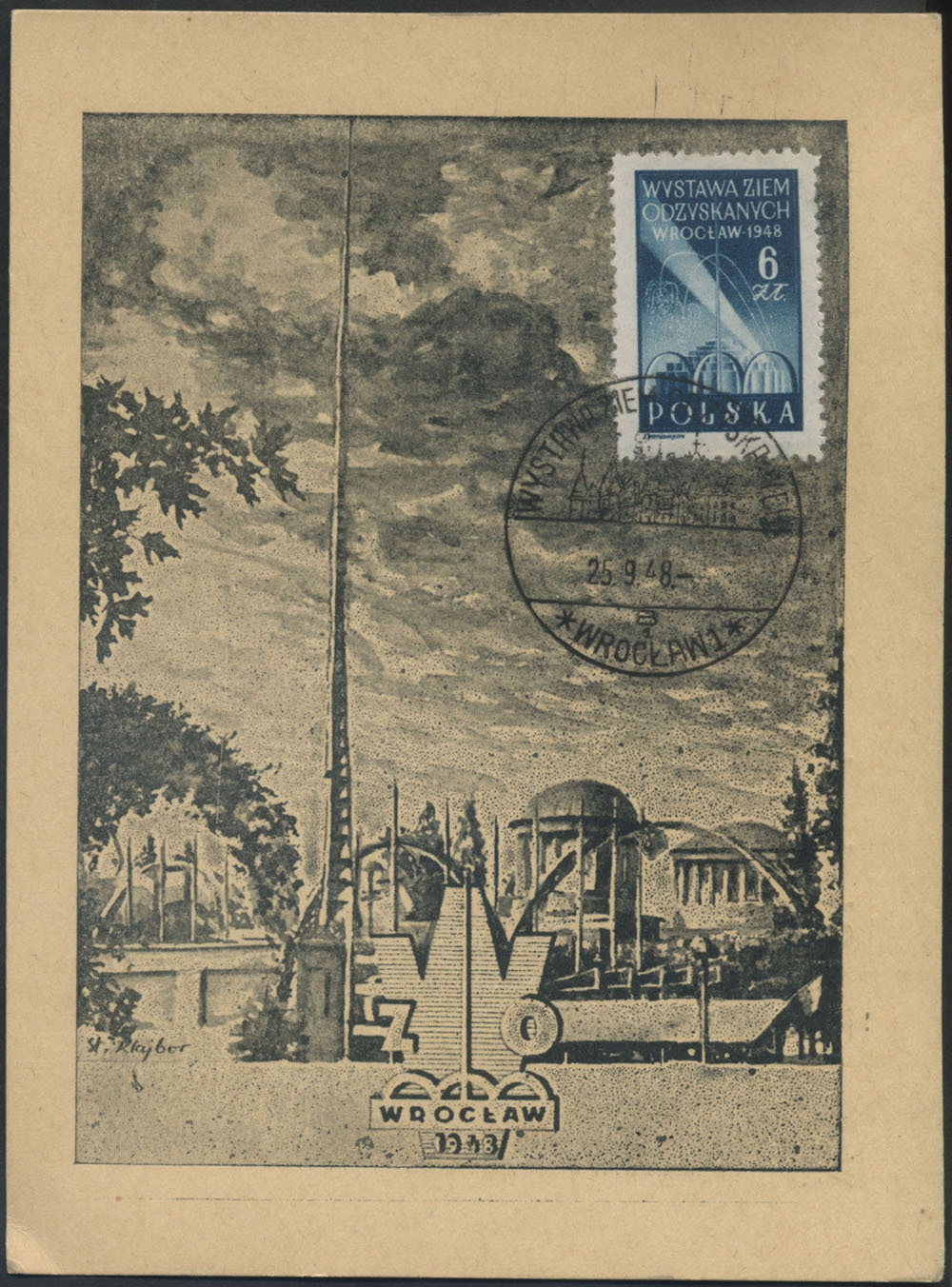 1948 karta maksimum z Wystawy Ziem Odzyskanych we Wrocławiu. | Fi.462 |