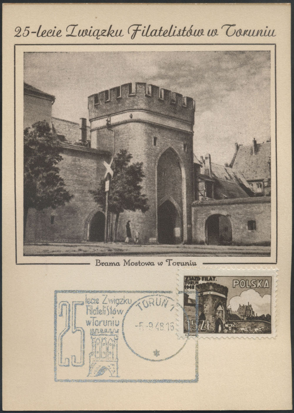 1948 25-lecie Związku Filatelistów w Toruniu, karta maksimum. | Fi.468 |