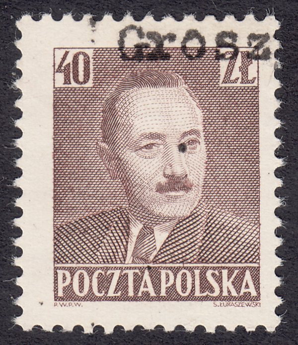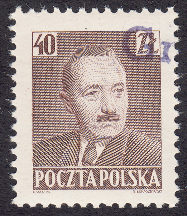 1950 Bolesław Bierut, znaczek z pustopolem na lewym marginesie. | Fi.534 Mi.672 |