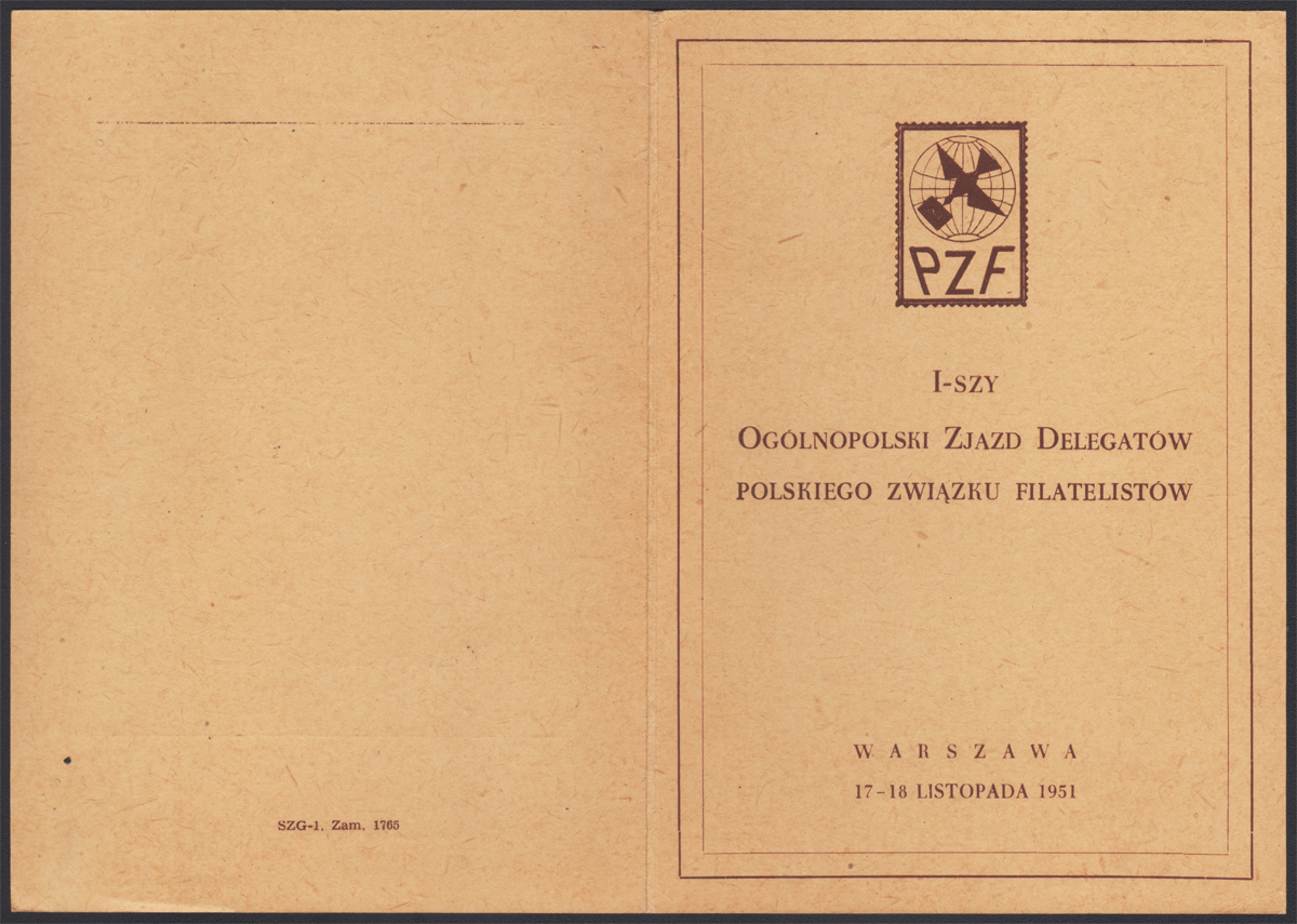 1951 Ogólnokrajowy Zjazd PZF, dwie odmiany bloku czystego, pierwsza rzadsza w kolorze czewonawobrązowym na białym cieńszym, a druga brązowa na kremowym grubszym papierze. | Fi.bl.12 |
