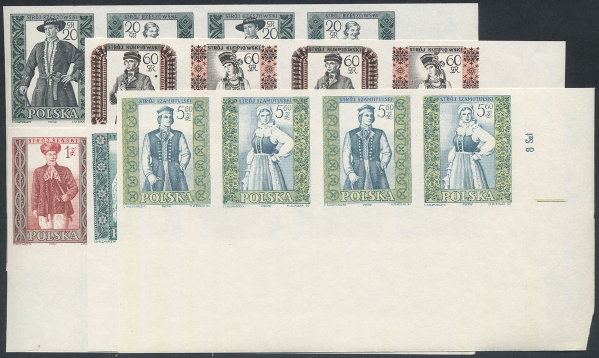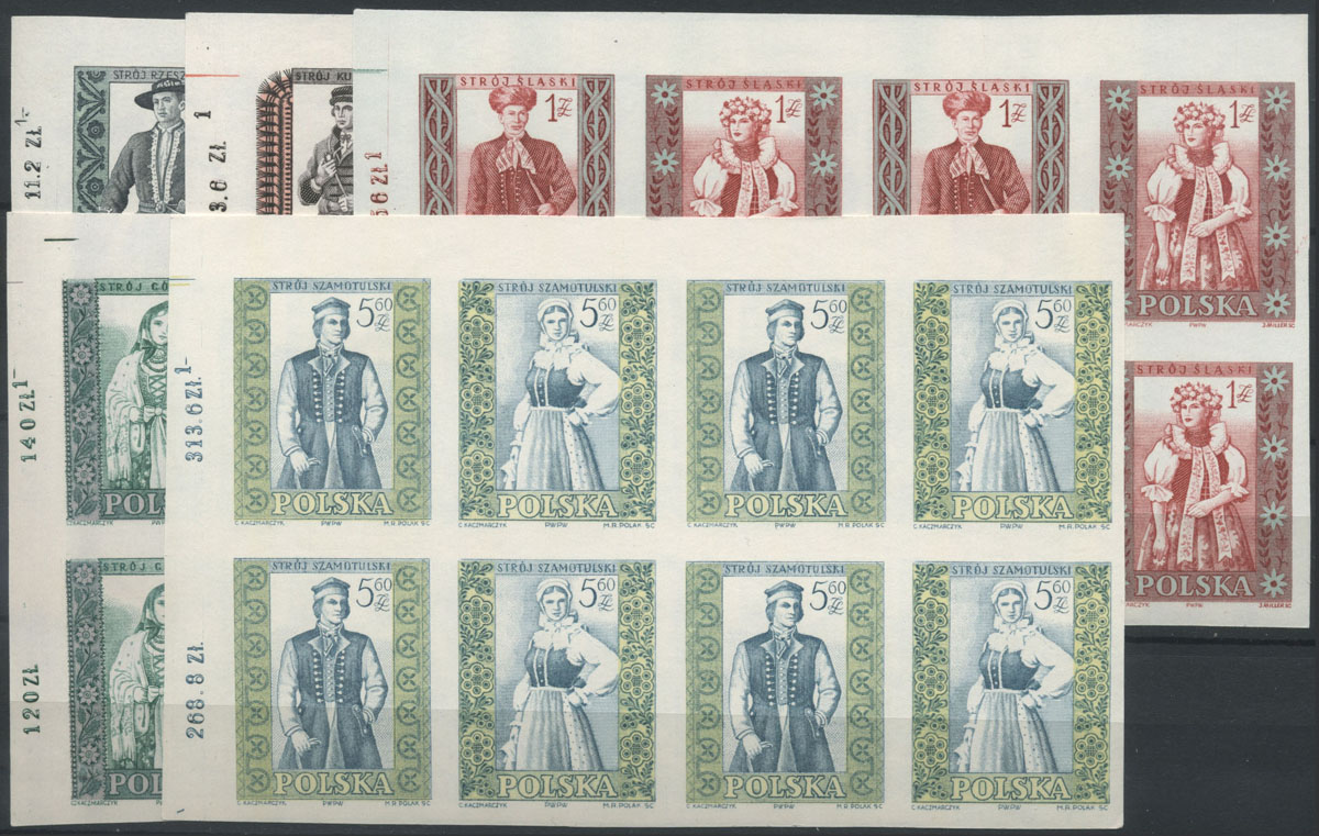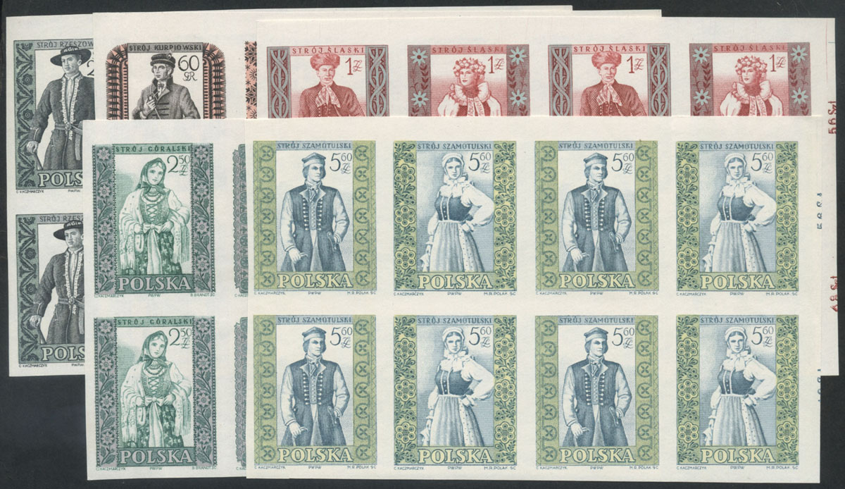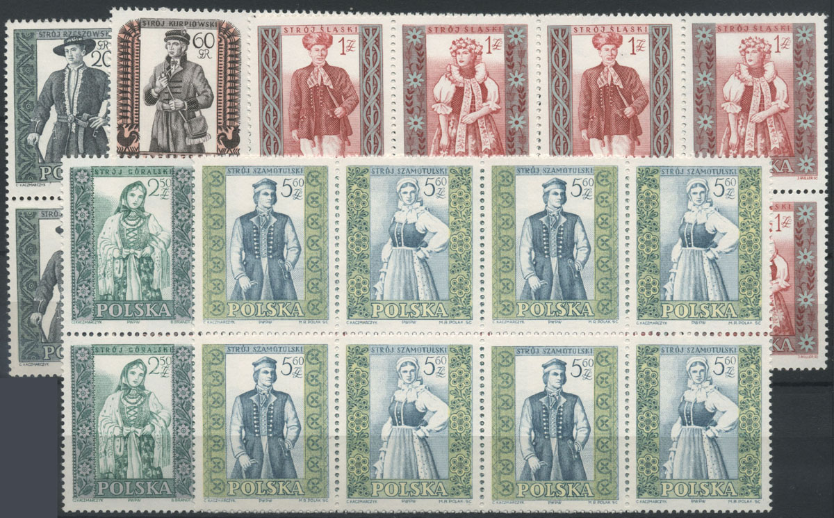1959 polskie stroje ludowe, seria w czworoblokach. | Fi.994-1003B Mi.1138-47A |