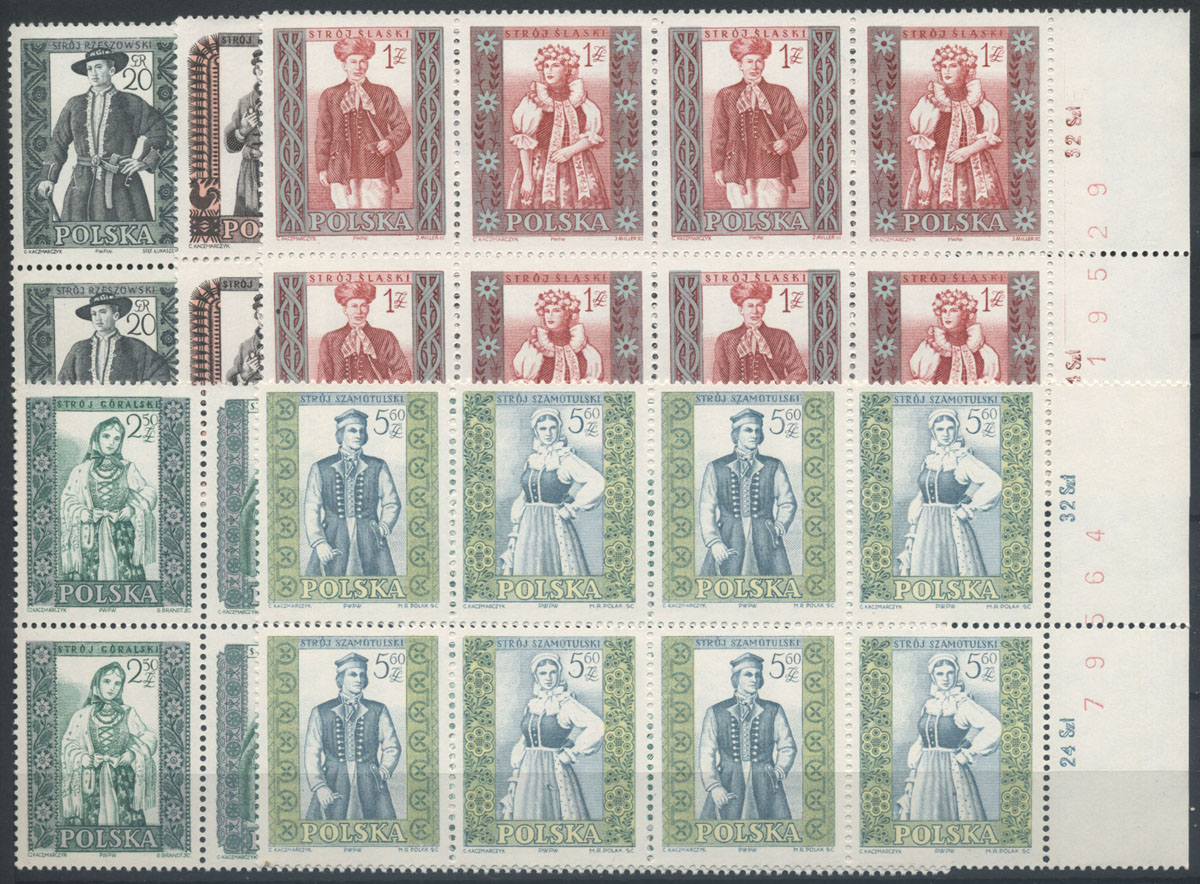 1959 polskie stroje ludowe, seria w czworoblokach. | Fi.994-1003A Mi.1138-47B |