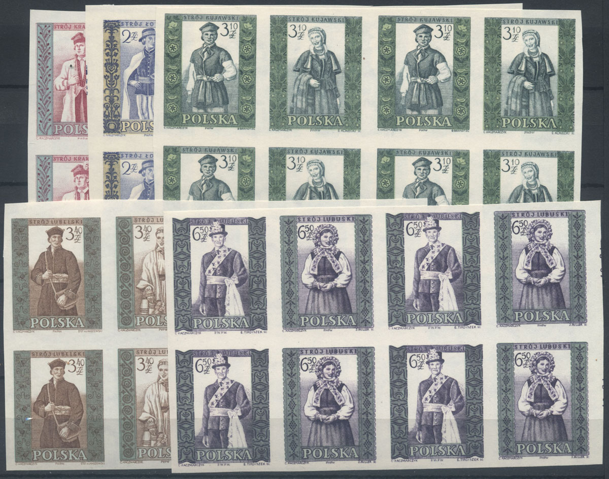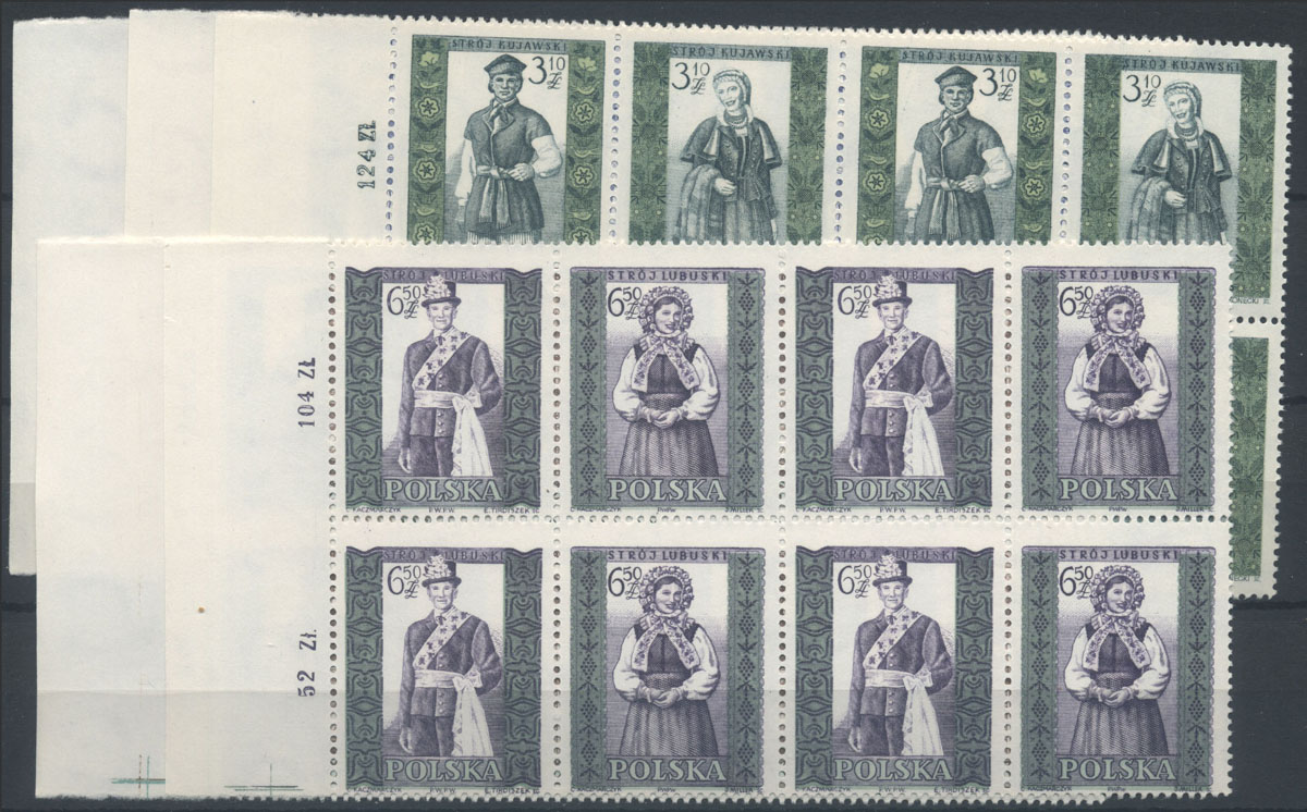 1960 polskie stroje ludowe, seria w czworoblokach. | Fi.1012-21A Mi.1156-65B |