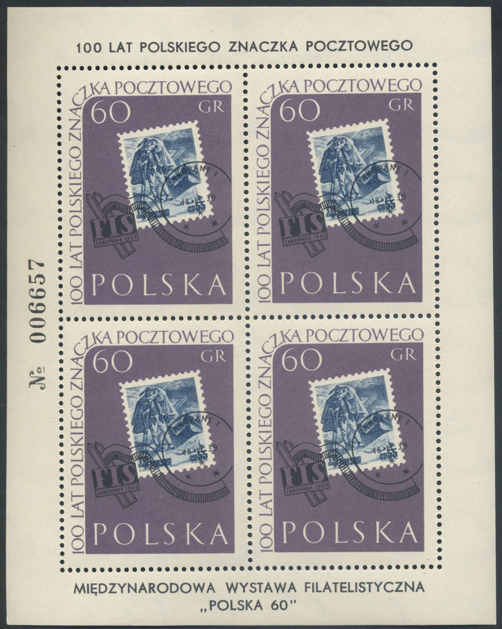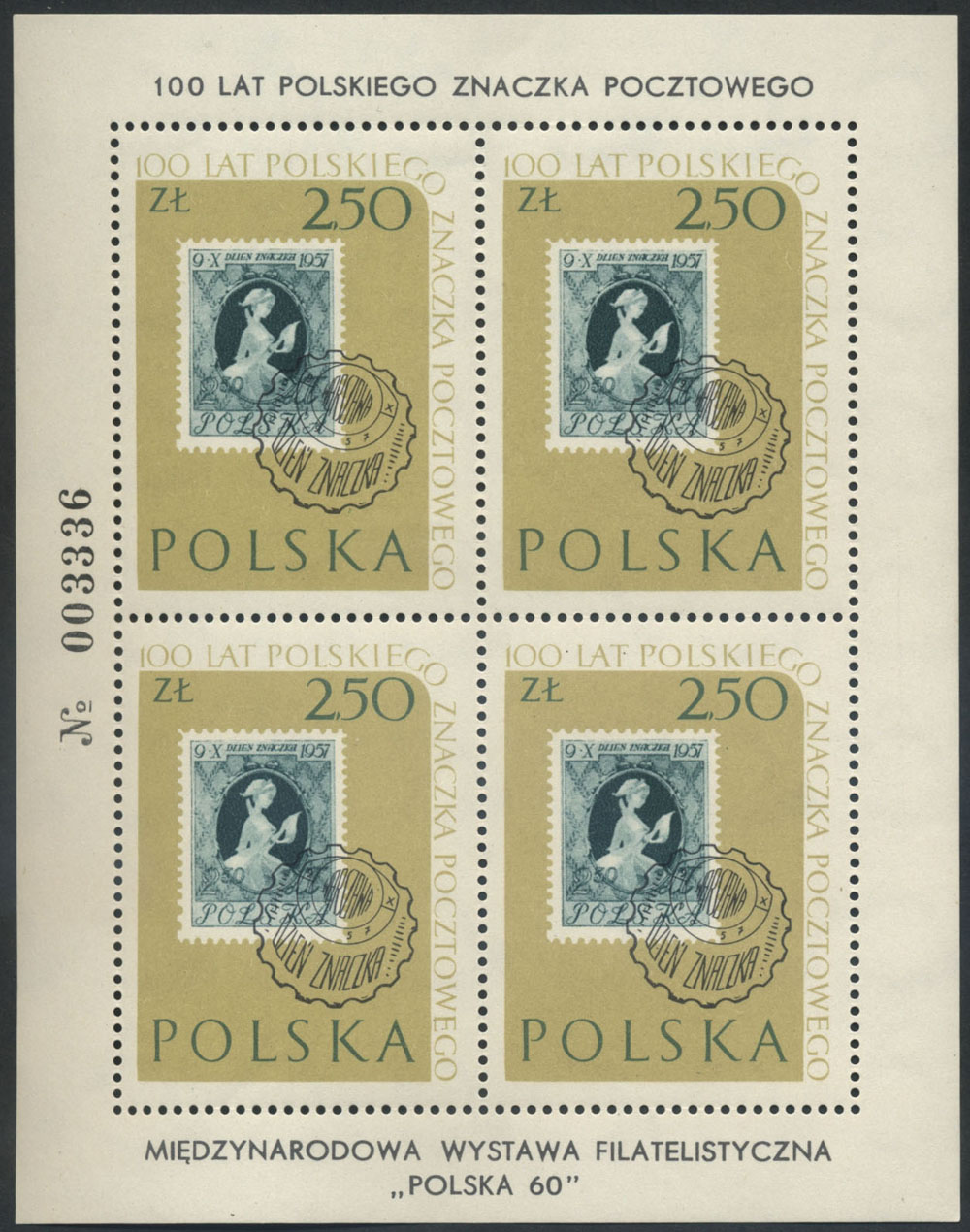 1960 100-lecie polskiego znaczka pocztowego, blok. | Fi.bl.25 |