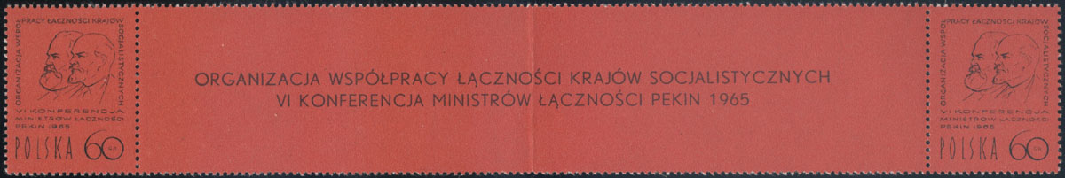 1965 VI Konferencja Ministrów Łączności w Pekinie, znaczki rozdzielone długą przywieszką, lekkie sfałdowanie papieru po lewej stronie. | Fi.1447 Mi.1596 |