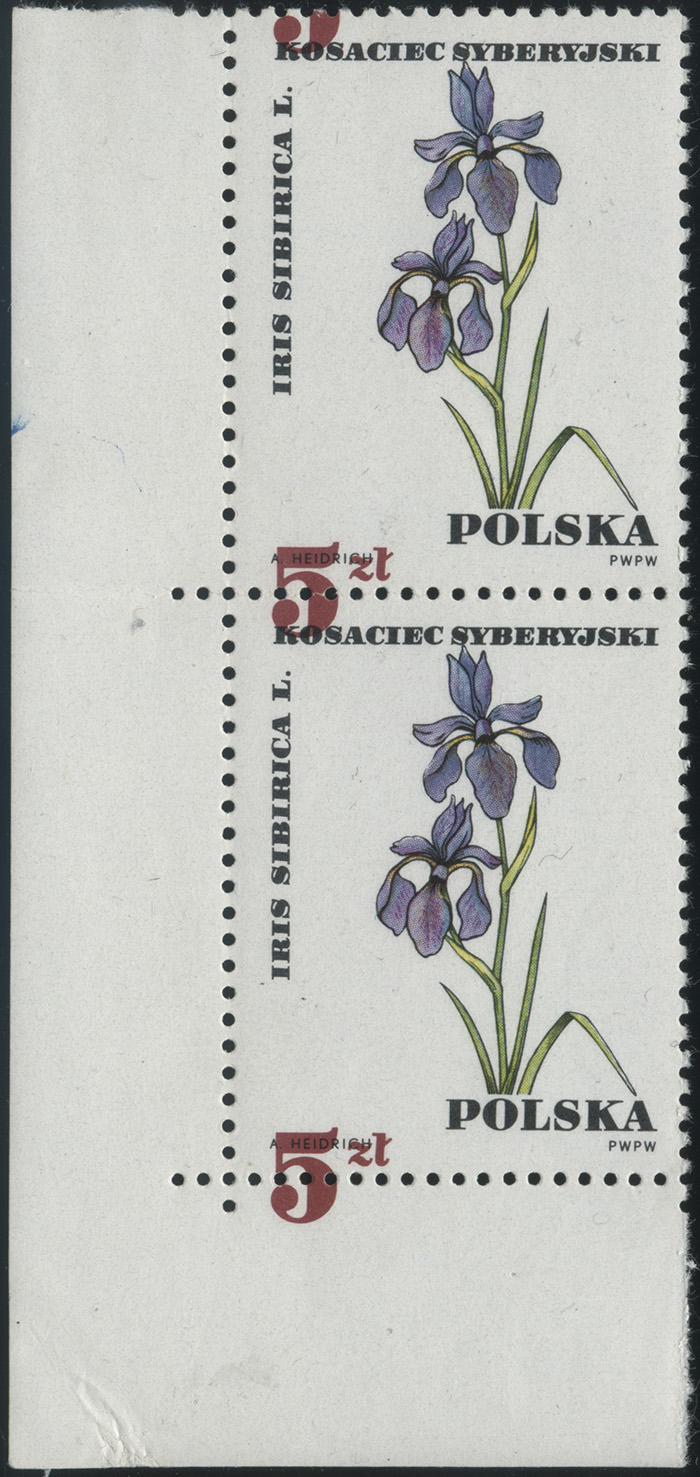 1967 rośliny chronione, parka z silnie przesuniętym w pionie drukiem barwy brązowej. Narożna parka pionowa, dzięki marginesom parka wyjątkowo ładnie prezentuje błąd. | Fi.1627MK2 Mi.1774 |