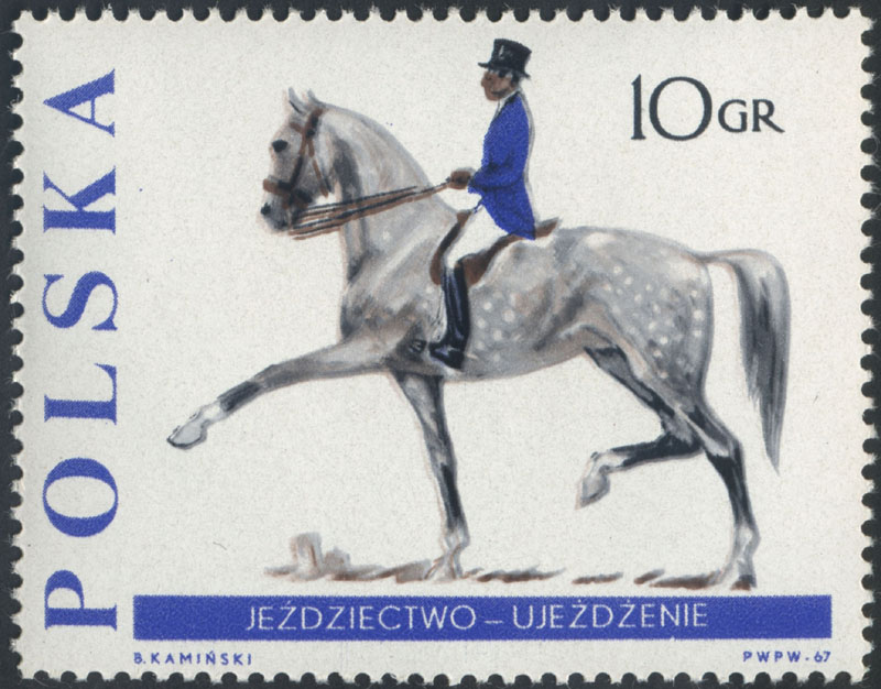 1967 jeździectwo, znaczek z niespasowanym drukiem kolorów, gwarancja Walocha. | Fi.1592MK Mi.1740 |