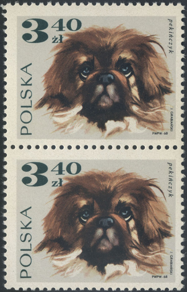 1969 rasy psów, górny znaczek z błędem "żł zamiast zł", gwarancja i opis Więcław. | Fi.1756B1 Mi.1903I |