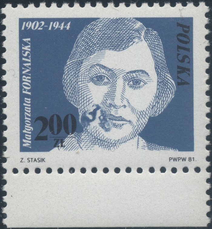 1981 200 lat Teatru Starego w Krakowie, makulaturowy znaczek z "rozlanym" drukiem stempla, gwarancja z opisem. | Fi.2632 Mi.2780 |
