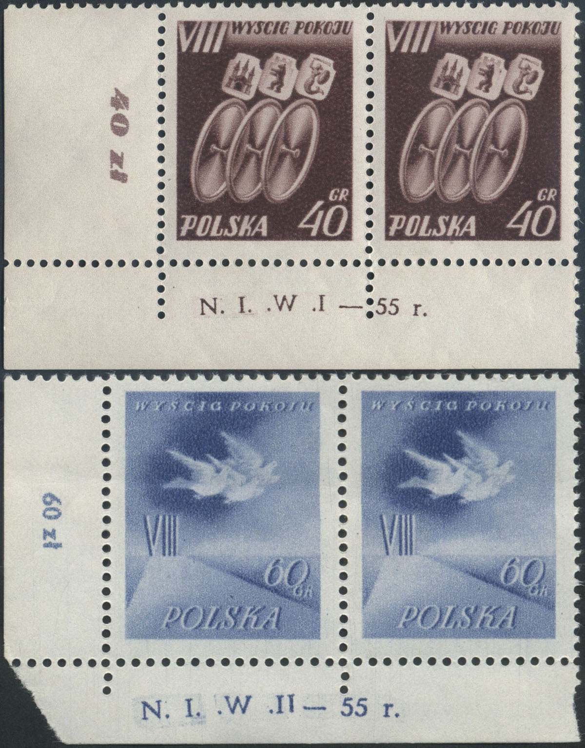 1955 VIII Wyścig Pokoju, seria w narożnych parkach z numerem walca na dolnym marginesie. | Fi.771-2 Mi.905-6 |