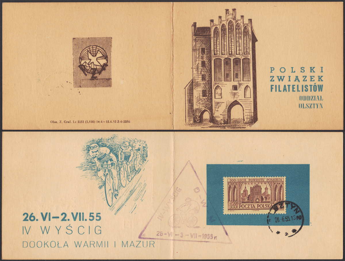 1955 karnet - "26.VI-2.VII.55 IV WYŚCIG DOOKOŁA WARMII I MAZUR". | Fi.736 Mi.876 |