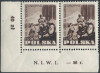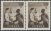 1955 V Światowy Festiwal Młodzieży, ząbkowane znaczki za 45 gr w parce poziomej z marginesem, lewy z klasycznym błędem "kokardka" na poz.39, na marginesie liczba rozrachunkowa "18 zł" z czwartego rzędu; bardzo dobry stan zachowania; gwarancja i opis Walocha. | Fi.780B B1 Mi.924A |