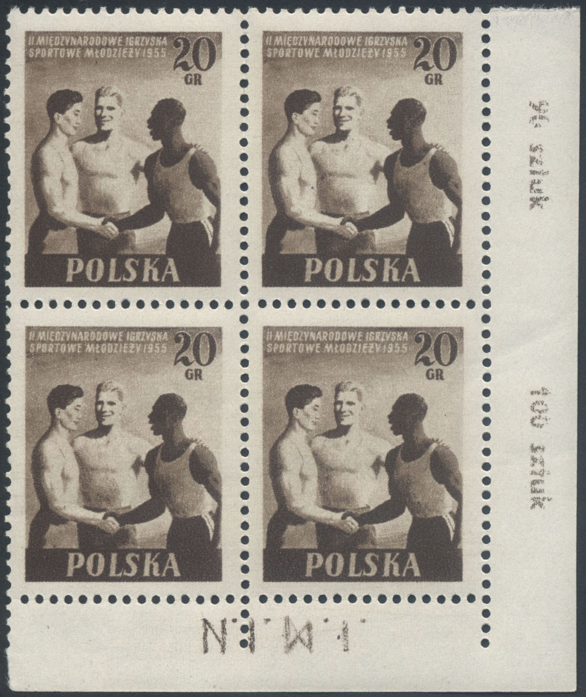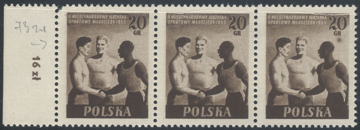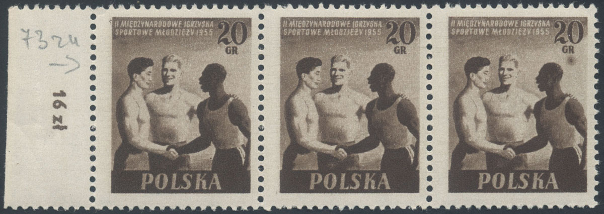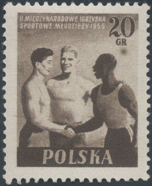 1955 II Międzynarodowe Igrzyska Sportowe Młodzieży, znaczek z błędem "plama pod GR". | Fi.790B B1 Mi.934A |