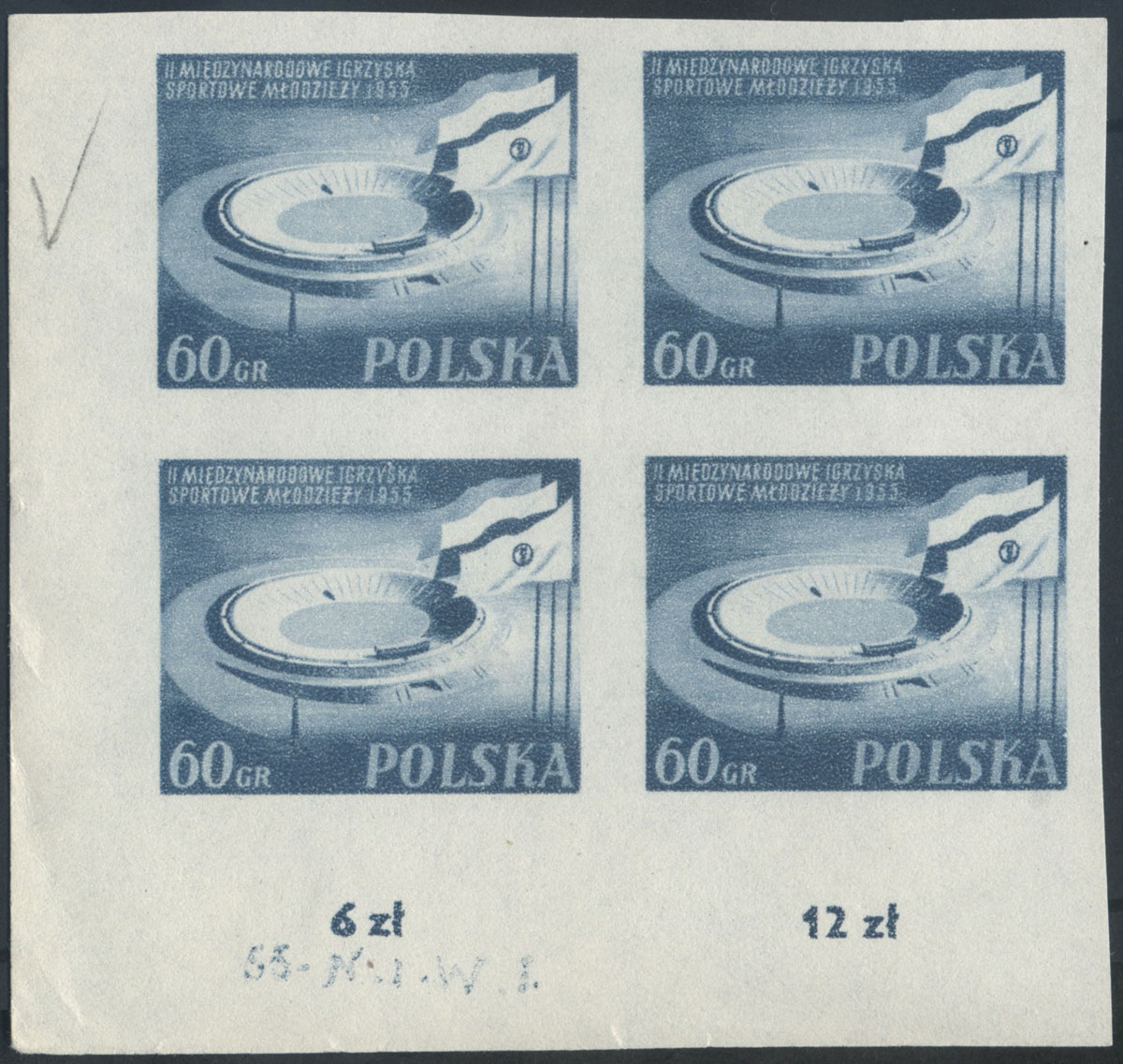 1955 II Międzynarodowe Igrzyska Sportowe Młodzieży, blok legitymacyjny. | Fi.791B Mi.937A |