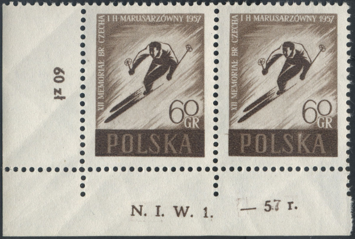 1957 XII memoriał Bronisława Czecha i Heleny Marusarzówny, narożna parka z numerem walca na dolnym marginesie. | Fi.858a Mi.1002 |