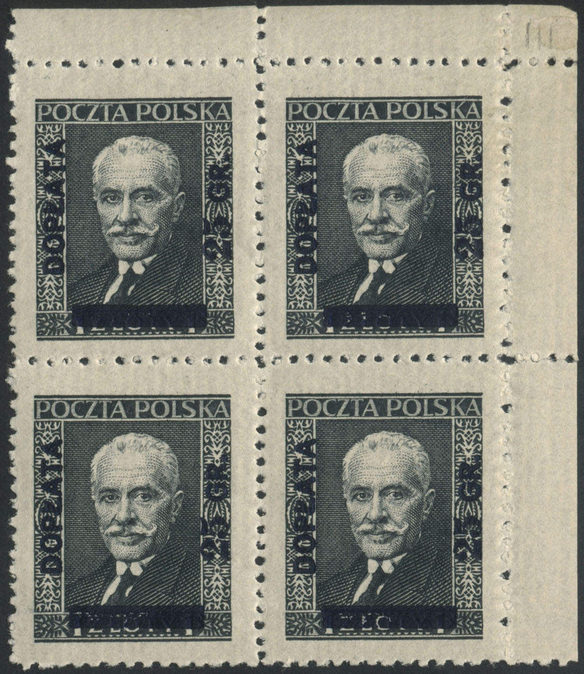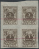 1934 wydanie przedrukowe, czworoblok znaczków dopłaty na papierze prążkowanym pionowo, fotoatest. | Fi.D91w |