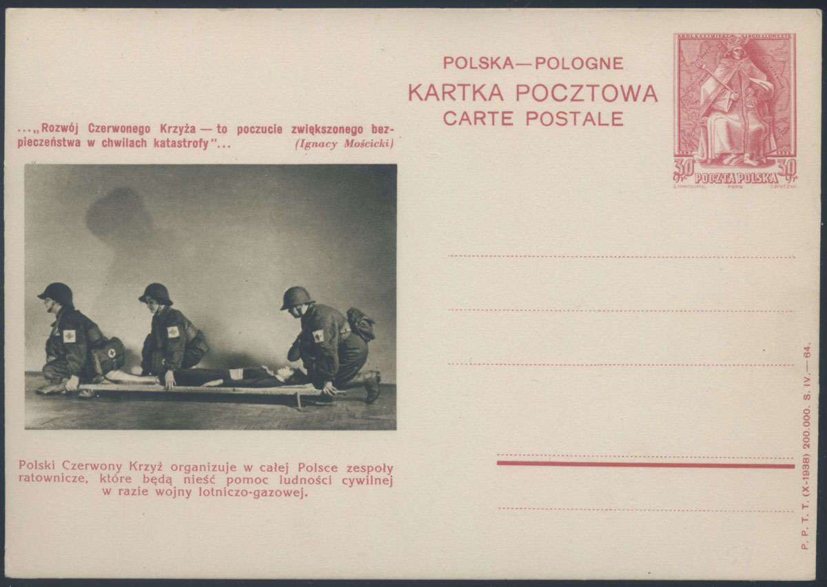 1938 król Kazimierz Jagiellończyk, całostka z ilustracją 64 - zespół ratowniczy Polskiego Czerwonego Krzyża. | Fi.Cp87 |