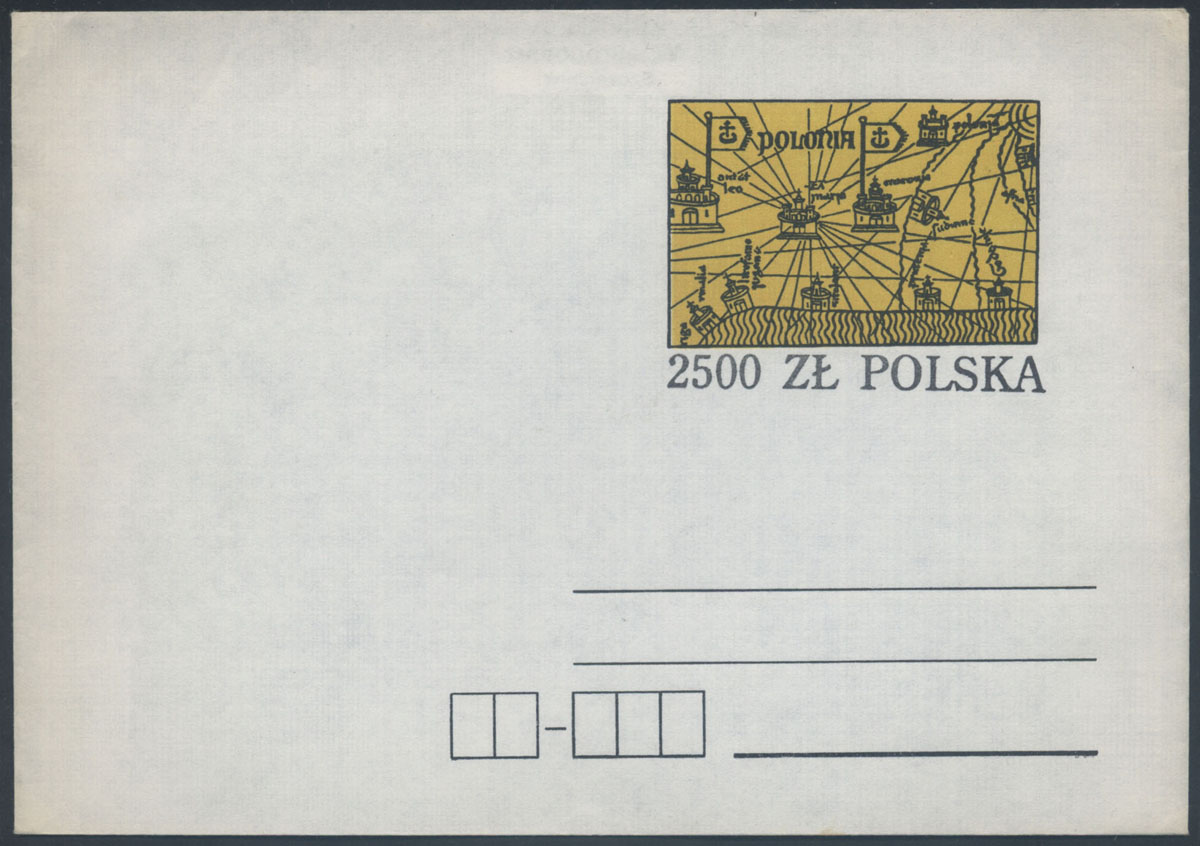 1991 Fałszerstwo na szkodę poczty - koperta "Mapa Polski wg. Atlasu Katalońskiego", na odwrocie sygnatura "Proj. znaczka Z.BIŃKOWSKI 1993"; czysta; gwarancja i oznaczenie Walocha. | Fi.Ck.90 FPt |