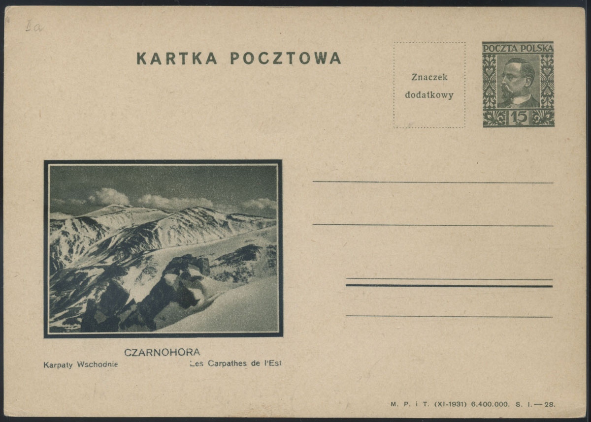 1926 całostka z sygnaturą krótką z obiegu pocztowego z 1934 roku. W górnej części uszczerbiona | Fi.Cp45Ia |