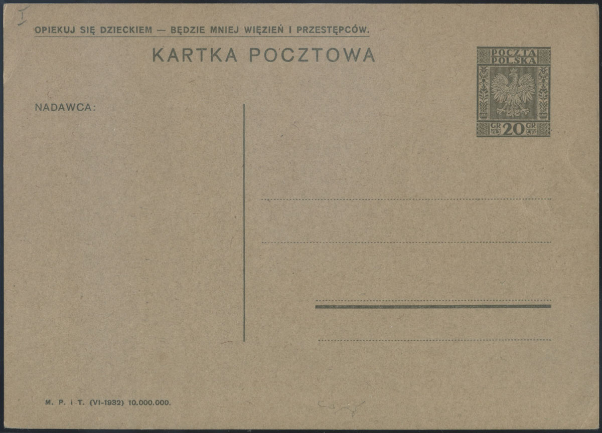 1932 całostka z sygnaturą III-1933 i hasłem propagandowym 1 z obiegu pocztowego z a agencji pocztowej Przeciszów. | Fi.Cp51 |