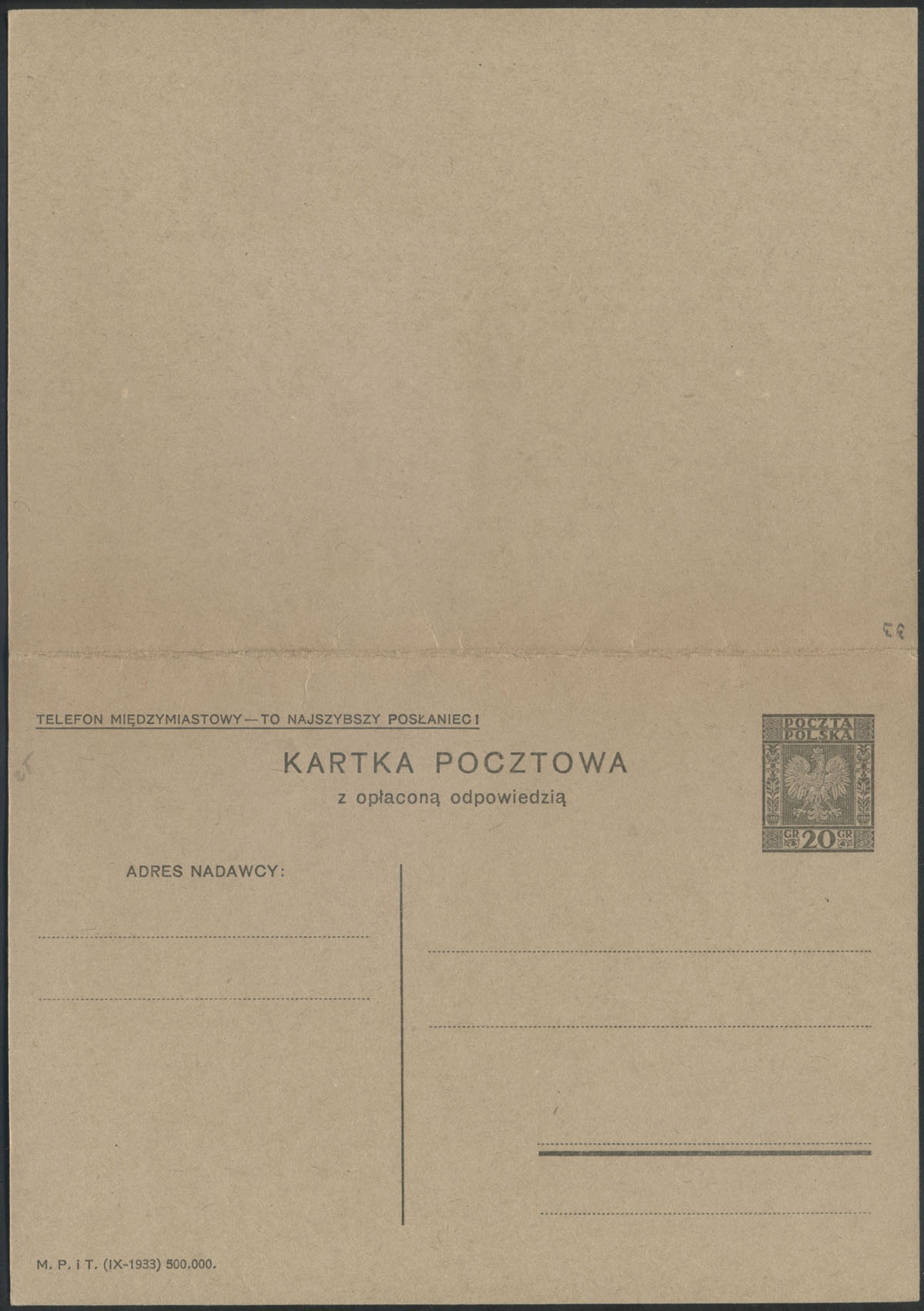 1932 podwójna całostka z opłaconą odpowiedzią. | Fi.Cp52 |
