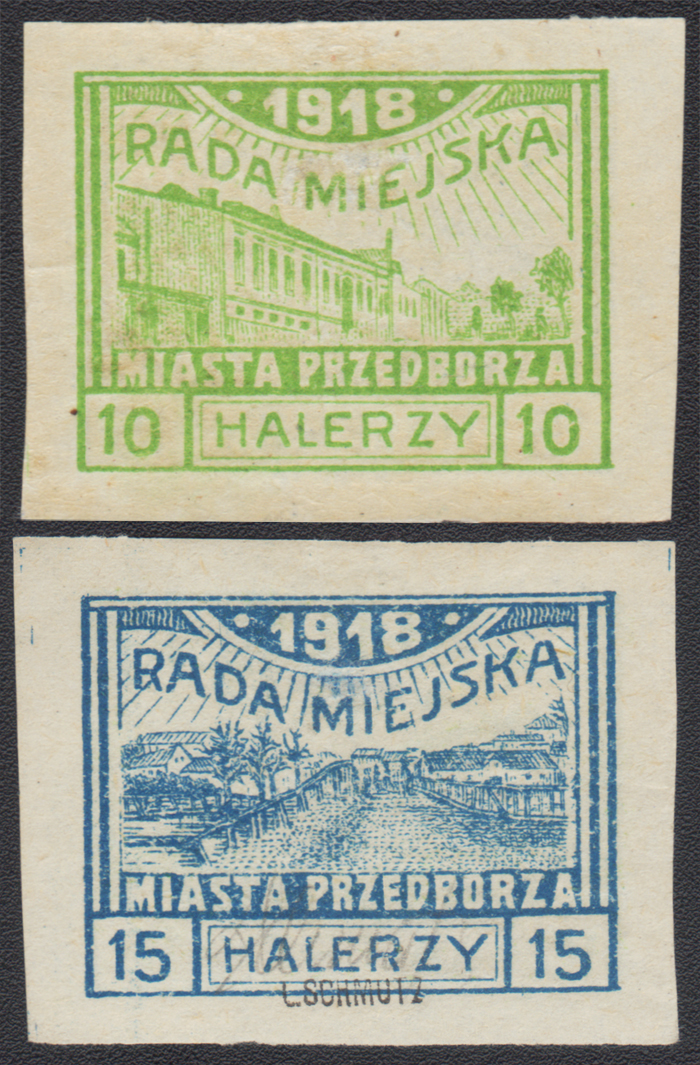 1918 Przedbórz, V wydanie, cięta seria czysta (Mi.48 euro), rzadka jako gumowana gdyż znaczną część nakładu wydano bez gumy, gwarancja. | Fi.15-18A Mi.15-18C |