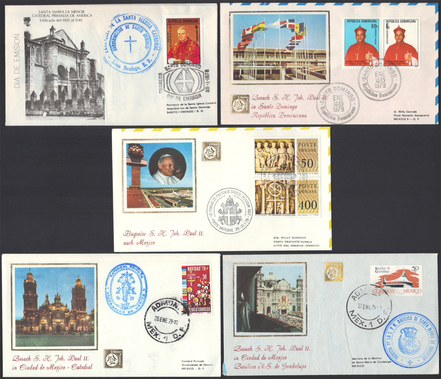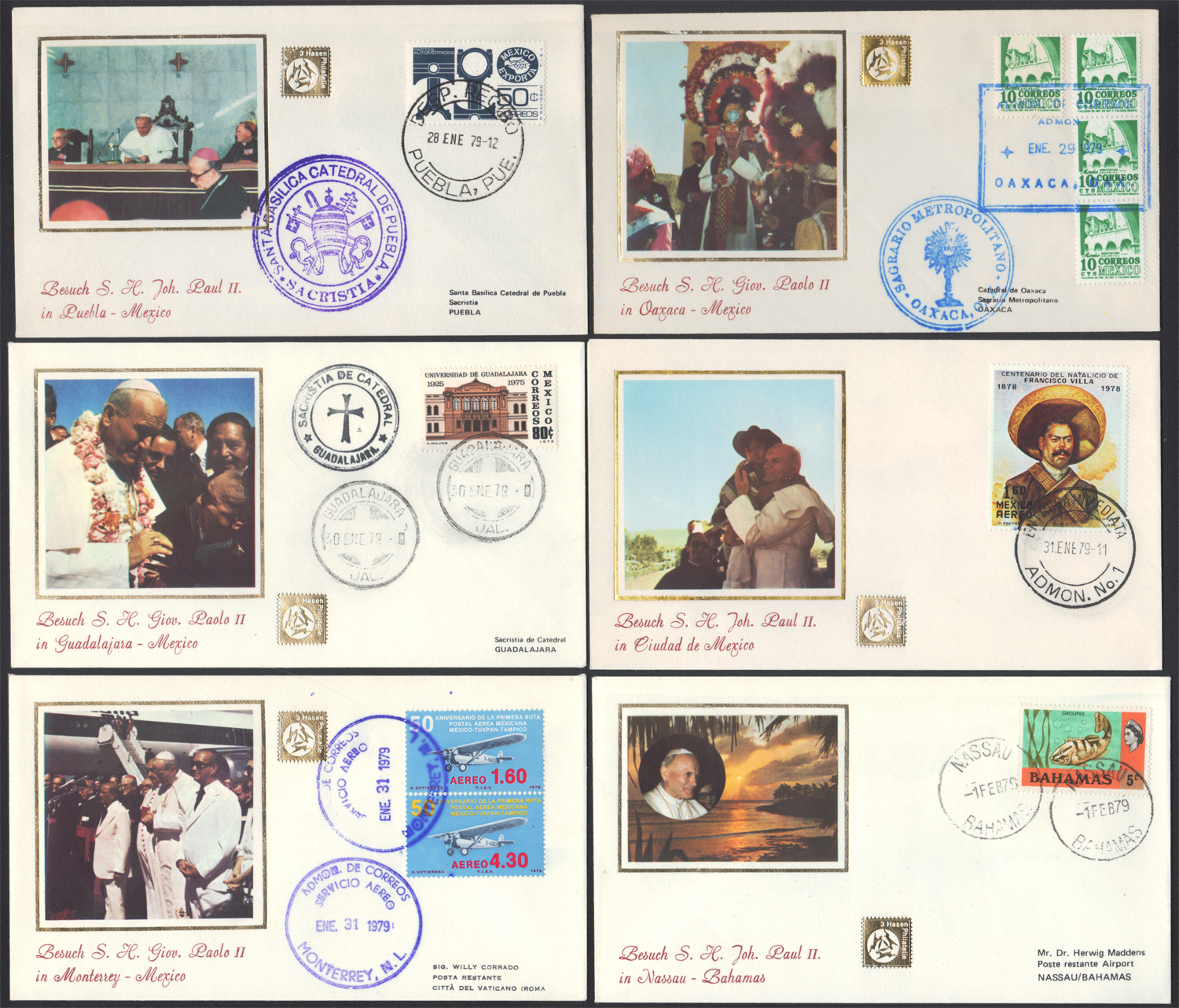 1979 pierwsza w historii pielgrzymka papieża Jana Pawła II po jego wyborze (25.I-01.II) obejmująca: Dominikanę, Meksyk i Bahamy, zestaw 11 dekoracyjnych całości. | |