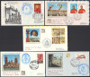 1979 I wizyta papieża Jana Pawła II w Polsce, komplet 6 kopert, w tym 4 koperty FDC z datownikami okolicznościowymi z dnia 7.6.79 i dodatkowo znaczki ze stemplami Kraków i Oświęcim (Mi.69 euro). | Fi.2482-3, bl.106a-b Mi.2629-30, Bl.75-6 |