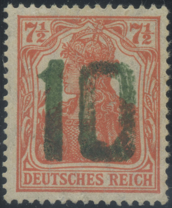 1919 wydanie gnieźnieńskie, znaczek z nadrukiem z poz. 15, gwarancja i oznaczenie Schmutz. | Fi.72 Mi.135 |