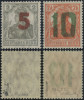 1919 wydanie gnieźnieńskie, znaczek za 10 fen. z nadrukiem z poz. 55, znaczek za 5 fen. gwarancja Landré, znaczek za 10 fen. gwarancja Jugjohann i z oznaczeniem Kronenberg. | Fi.72-3 Mi.135-6 |