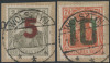 1919 wydanie gnieźnieńskie, seria stemplowana na wycinkach kasownikiem Wolsztyna, znaczek za 5 fen. w typie 2, znaczek za 10 fen. z nadrukiem z poz. 3, gwarancja i oznaczenie Puchała. | Fi.71b, 72b |