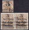 1918 wydanie PP/GGW, parka kasowanych znaczków za 5/3 fen. z nadrukiem pierwszą formą, lewy z opisanym przez L.Schmutza i K.Sztabę rzadkim w tak zawansowanej postaci błędem na poz.85 "prosta górna krawędź chorągiewki 5-tki, uszkodzona litera o w Poczta", gwarancja pełen opis i oznaczenie Schmutz. | Fi.9Ib B Mi.15I |