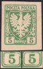 1919 wydanie Komisji Rządzącej, parka znaczków z błędami: lewy znaczek "przerwana ramka w lewym górnym rogu" i prawy znaczek "przerwana litera C w POCZTA". | Fi.57 |