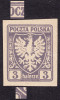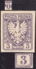 1919 wydanie Komisji Rządzącej, znaczek za 3 h. z niekatalogowanymi błędami "wcięcie w literze C w POCZTA" i "kropka między tarczą orła a obwódką lewej cyfry 3", gwarancja Walocha. | Fi.56 B Mi.55 |