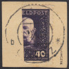 1918 ZNACZKI DZIELONE, wydanie obiegowe austriackiej poczty polowej z podobizną cesarza Franciszka Józefa, połówka znaczka za 40 hal. użyta kilka dni po wyzwoleniu w Olkuszu na terenie byłego zaboru rosyjskiego, do tej pory odnotowano w Olkuszu użycie znaczka dzielonego za 2 Kr. w kolorze karminowym, gwarancja Krawczyk. | Fi.36 |