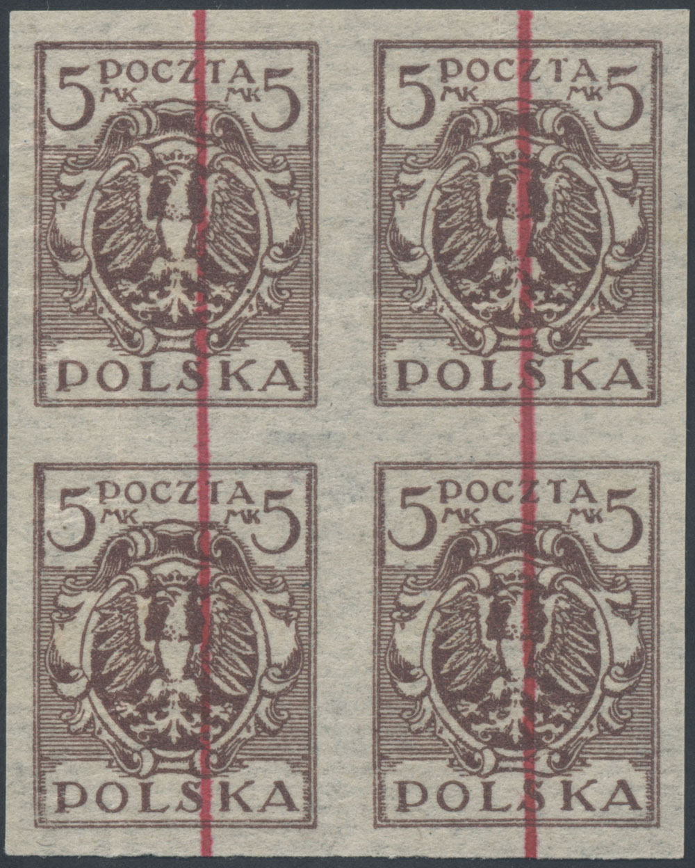 1920 wydanie dla obszaru całej Rzeczypospolitej, narożny czworoblok z perforacją na zagiętym papierze. | Fi.99MK Mi.115 |